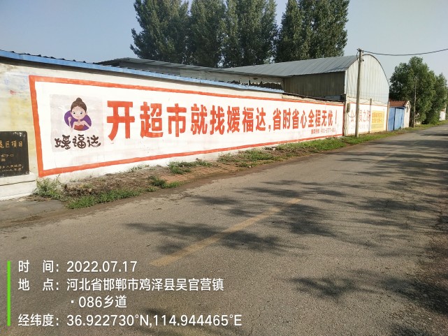 现在我们到乡村,尽收眼底的除了洁白的大路两旁的围墙,和优美的彩绘画面,走着看着乡村美景,朴实的田园风情,通常还有无孔不入的刷墙墙体广告。